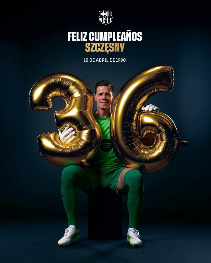 4月18日讯 巴萨官方晒海报,祝贺什琴斯尼36岁生日。