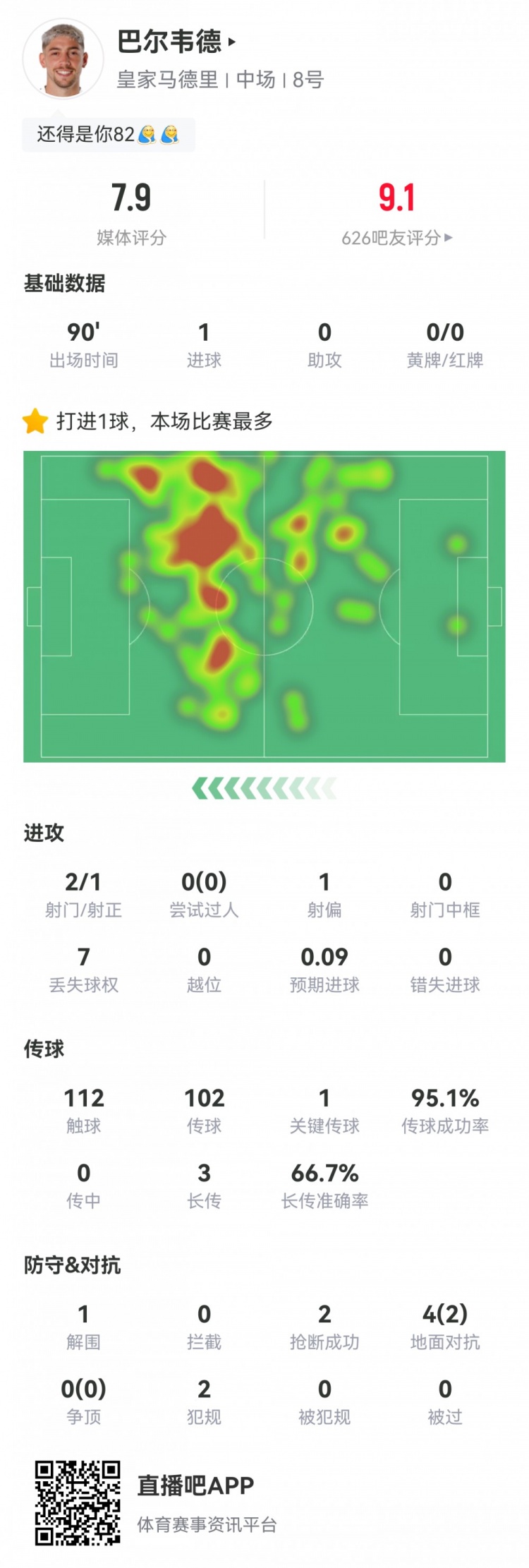 3月7日讯 本轮西甲,皇马2-1客场绝杀塞尔塔。此役巴尔韦德首发打满全场打进绝杀进球,球员全场重点数据如下↓