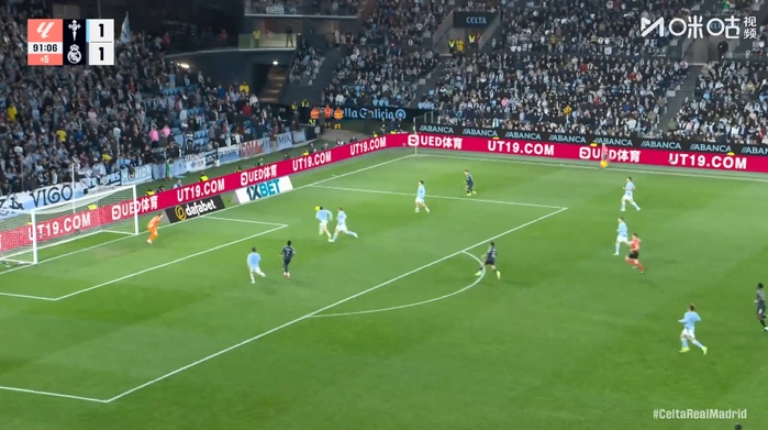 03月07日讯 西甲第27轮,塞尔塔主场迎战皇家马德里,比赛将进入补时时,导播手误将补时时间加成了50分钟,随后修正为正确的5分钟。