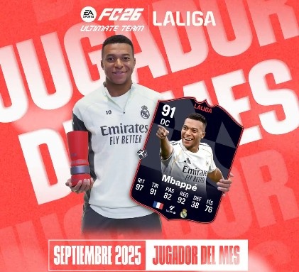 10月4日讯 官方音讯,皇马时尚姆巴佩当选西甲9月最好球员。