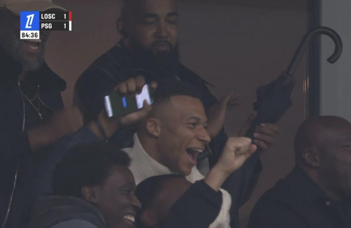 小姆巴佩绝平巴黎!随后效法姆巴佩庆祝手脚,姆总在看台乐开了花