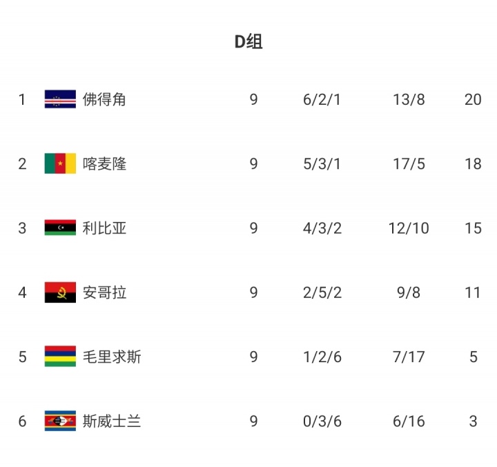 世初赛终末一轮,佛得角仍抓有2分上风,下轮面临小组垫底的斯威士兰,赢球即可确保队史初度晋级天下杯;喀麦隆第2过时2分,但抓有7个净胜球上风。