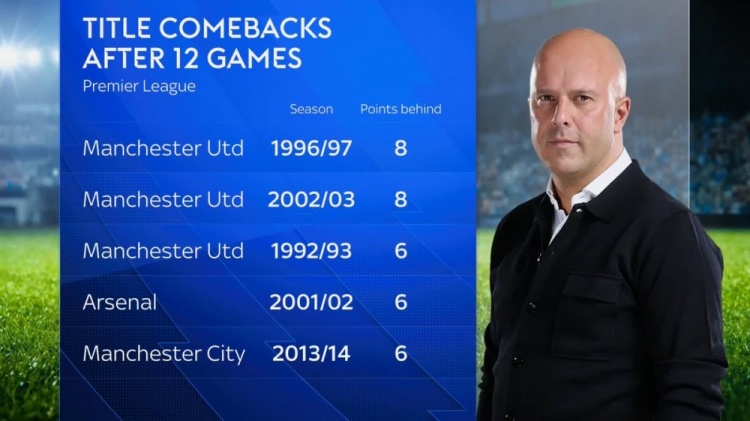 第12轮过期榜首6分或更多最终夺冠,英超历史仅出现5次